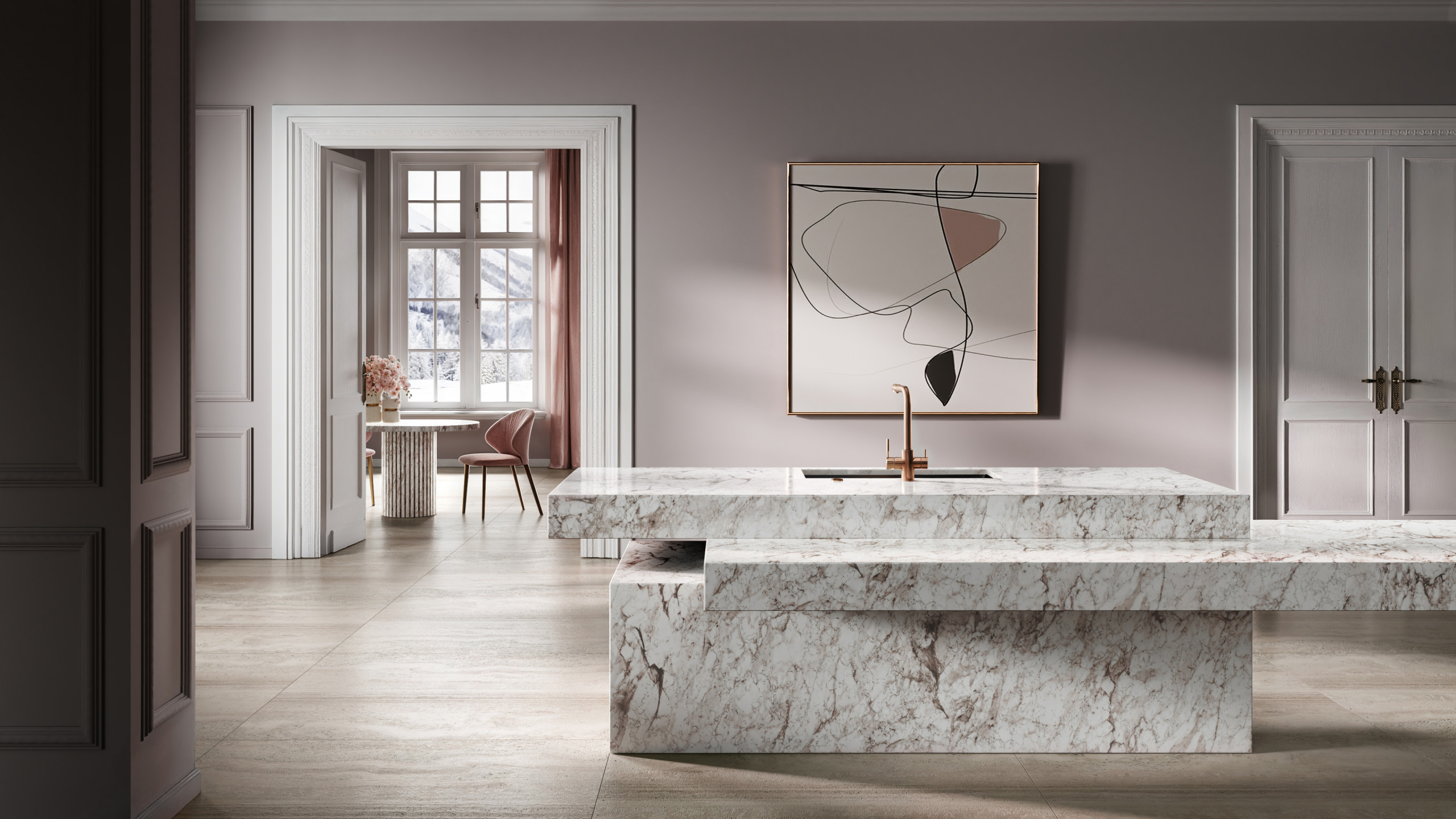 Alors que de nombreuses personnes ont probablement entendu parler du quartzite brésilien Taj Mahal ces dernières années, de nombreux fabricants s’inspirent du véritable Taj Mahal en Inde pour créer de nouveaux designs à l’aspect pierreux. Laminam a lancé son nouveau style de dalle en porcelaine Taj Mahal, illustré ici. Il s’inspire du marbre indien riche et chaud.