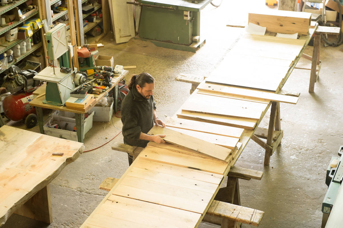 Cet ébéniste transforme planches à wagons ou anciens volets en cuisines uniques