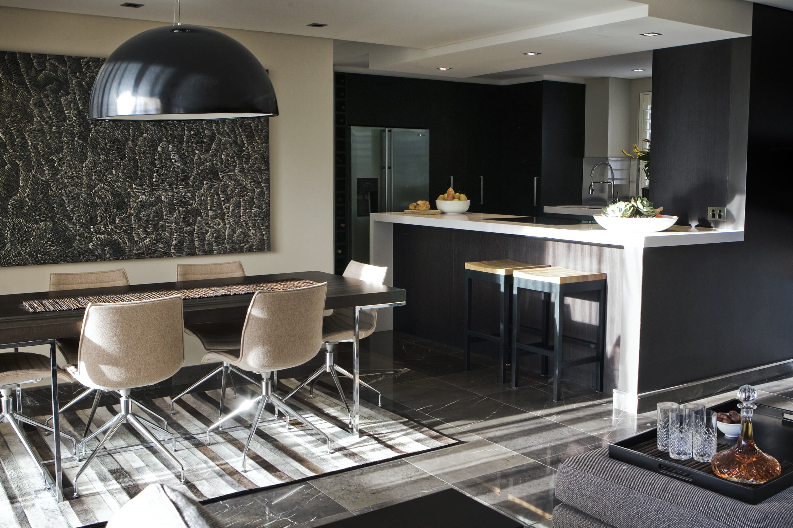 - Cette coupole en aluminium – ici laquée noir – est une pure merveille, qui dramatise subtilement l’espace qu’elle domine. Et ce, en abritant des moulures en plâtre blanc et plus étonnant encore, un diffuseur habillé de délicates dentelles en acier. Pour un rendu de lumière unique et pour le moins exceptionnel !