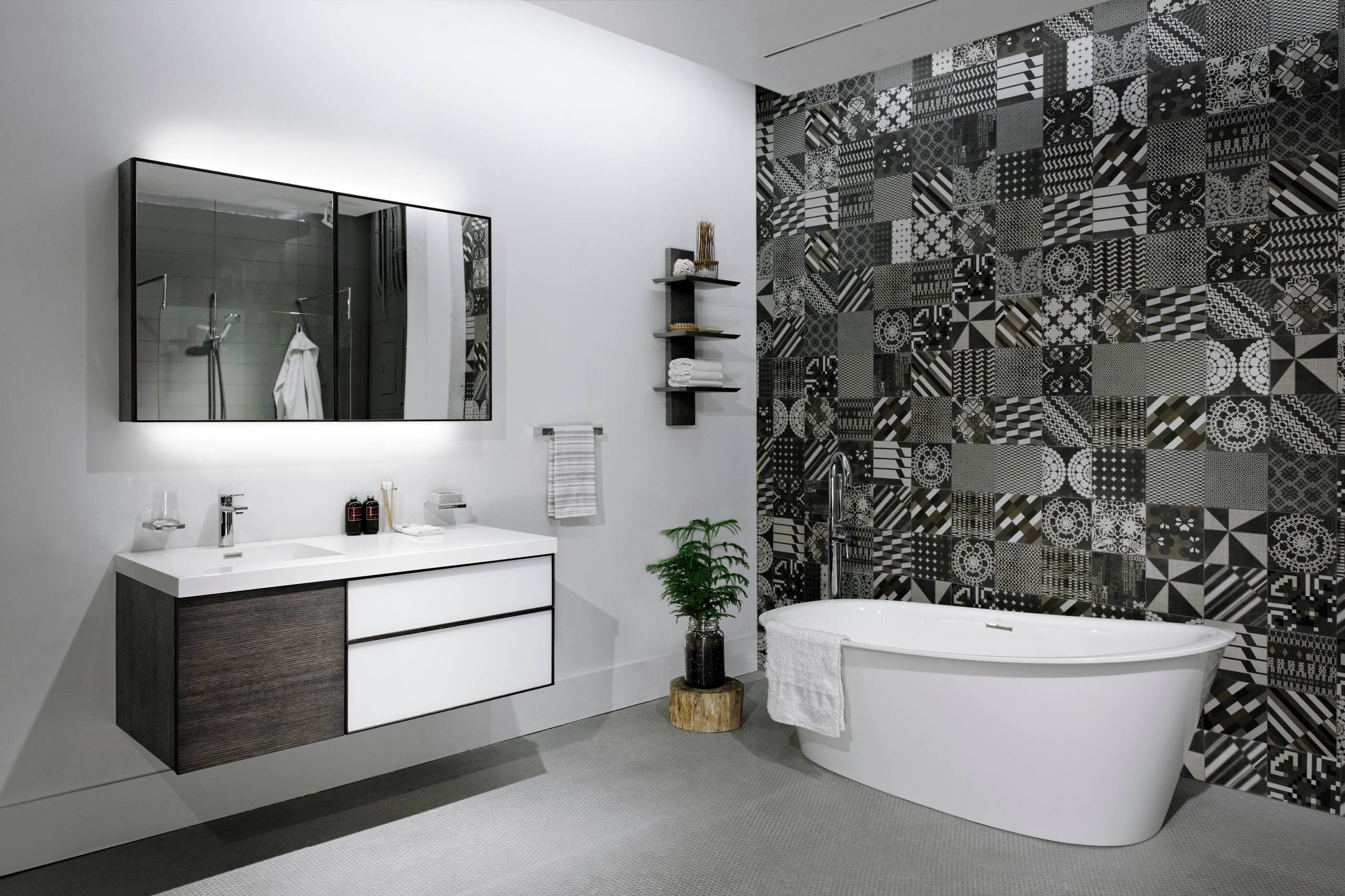 Pari réussi avec cette collection élégante de carrelage mural en grès cérame, avec une trentaine de motifs géométriques et figuratifs différents, déclinés dans des tonalités subtiles. Pour des combinaisons infinies, uniformes ou en patchwork.