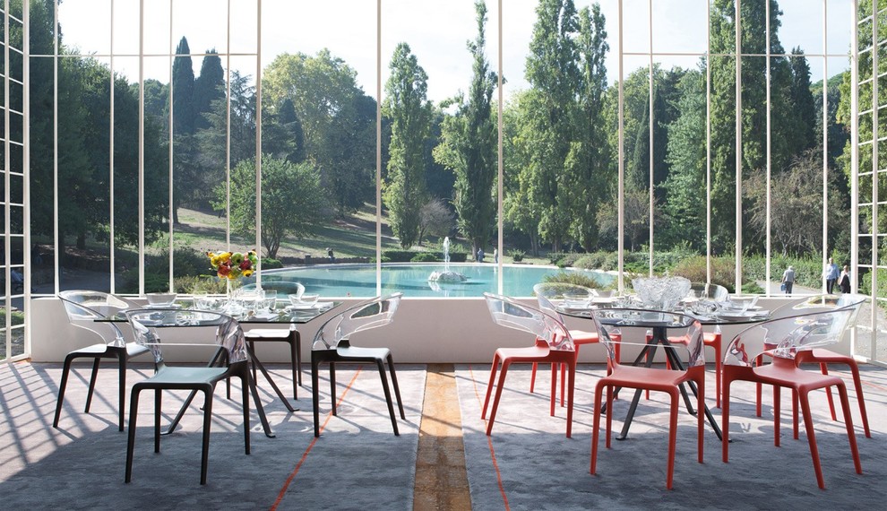 Réalisée en polypropylène, la Masters rend hommage à trois grands classiques qui ont marqué l’histoire du design du XXe siècle (la Tulip Armchair d’Eero Saarinen, l’Eiffel Chair de Charles Eames et la Series 7 d’Arne Jacobsen) pour un résultat hybride et détonnant qui sample leurs silhouettes à la perfection.