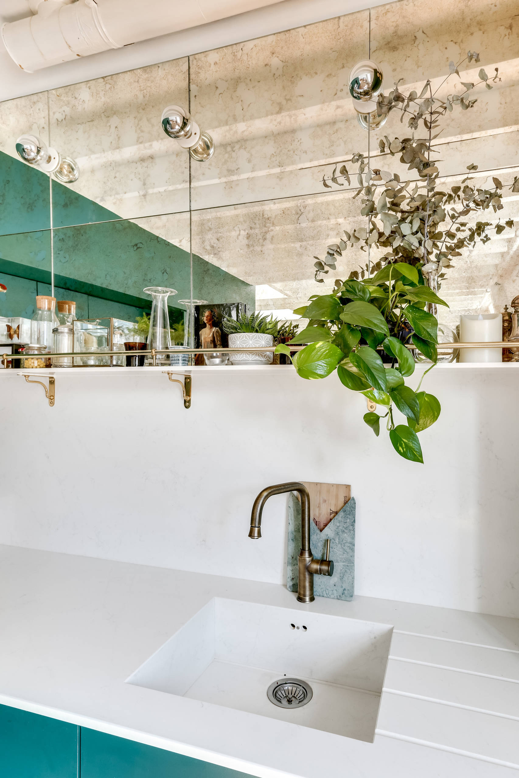 La crédence miroir ne sert pas seulement à agrandir l’espace et refléter la lumière : c’est aussi un atout décoratif !