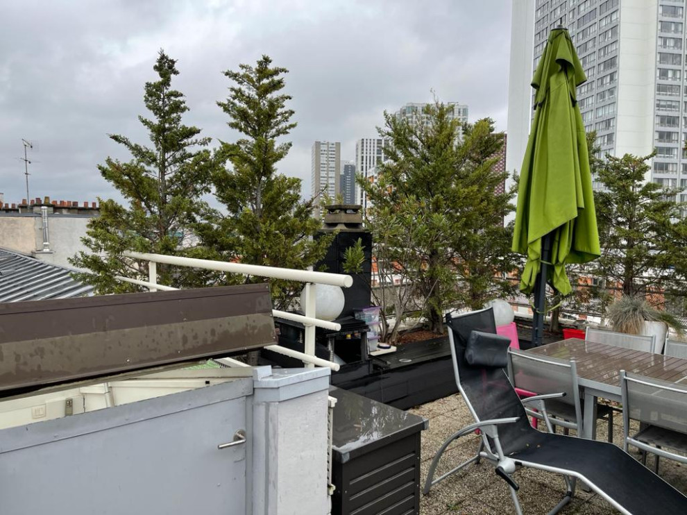 Avant. Cette terrasse est perchée au dernier étage d’un immeuble parisien du XIXᵉ siècle. Ses propriétaires ont fait appel à la société Terrasse et Jardin de Paris pour la végétaliser tout en en faisant un espace accueillant où recevoir leurs invités. Cette zone dénuée à l’origine de tout aménagement est devenue une salle à manger extérieure.