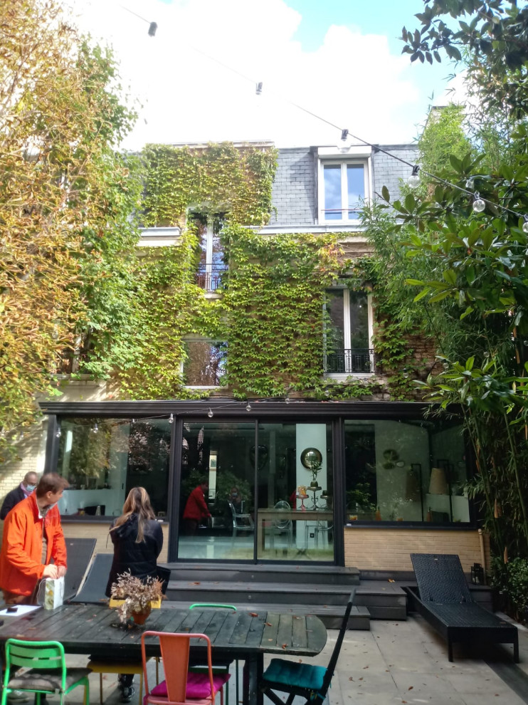 Avant. Située au rez-de-chaussée d’un immeuble du 16ᵉ arrondissement de Paris, cette petite cour privée n’avait d’attrayant que son potentiel lorsque les propriétaires en ont fait l’acquisition. Chargé de regrouper les deux appartements qui donnent dessus pour créer le logement d’une famille, l’architecte Vincent Nauleau, de l’agence VN Architecture, est parvenu à la transformer très facilement.