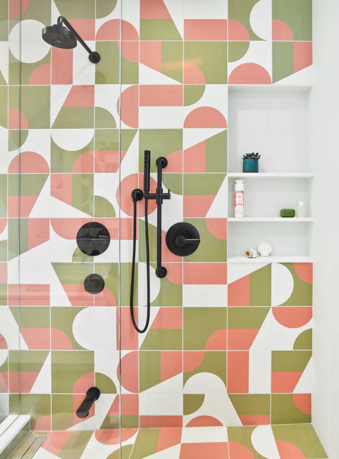 Cette astuce fonctionne aussi très bien aux murs, dans une douche par exemple. L’attention est détournée par le foisonnement des couleurs et des graphismes, elle ne se focalise donc pas sur les traces de savon ou de calcaire. Un décor uni aura tendance à attirer beaucoup plus vite l’attention sur ses défauts.