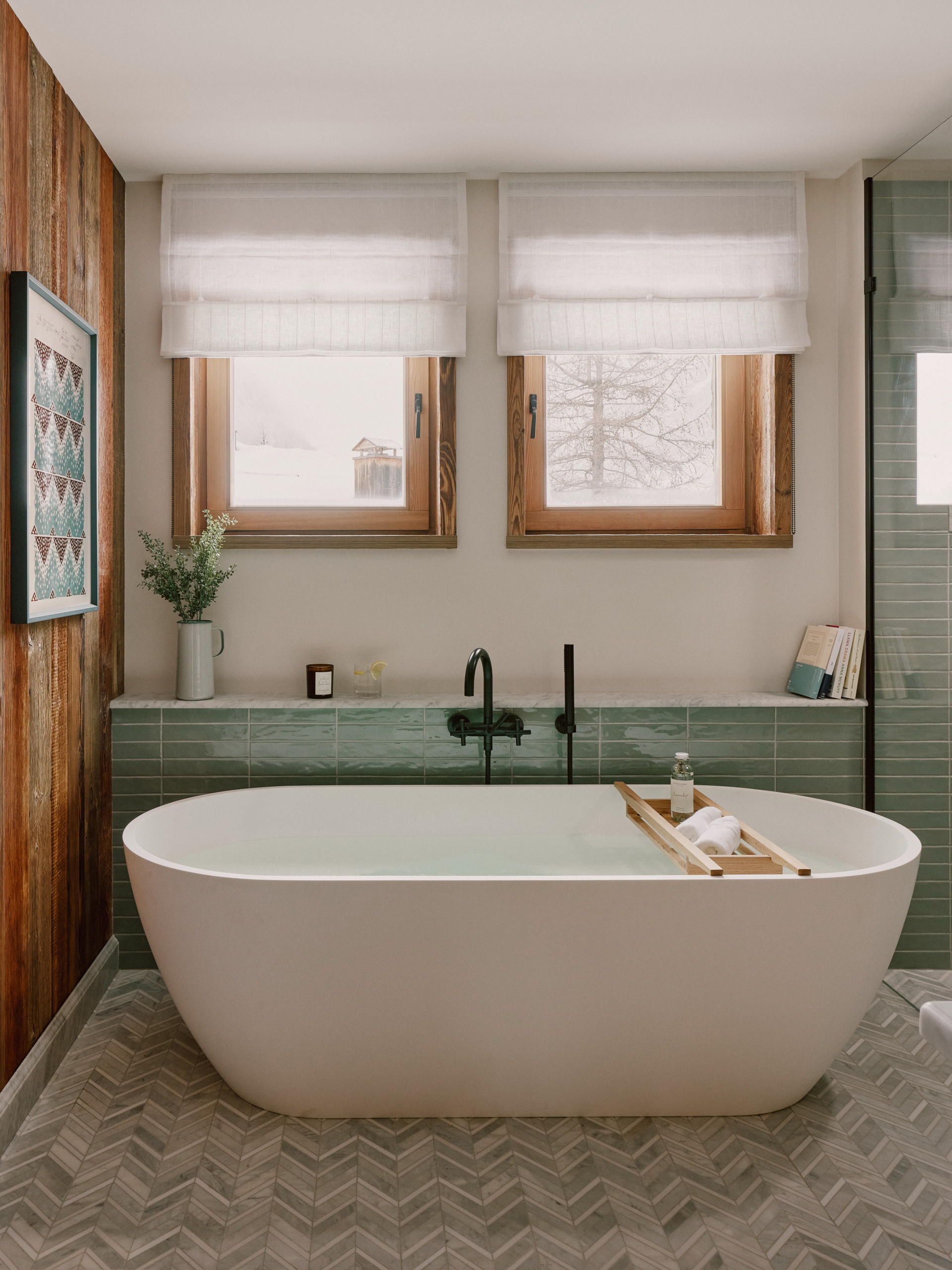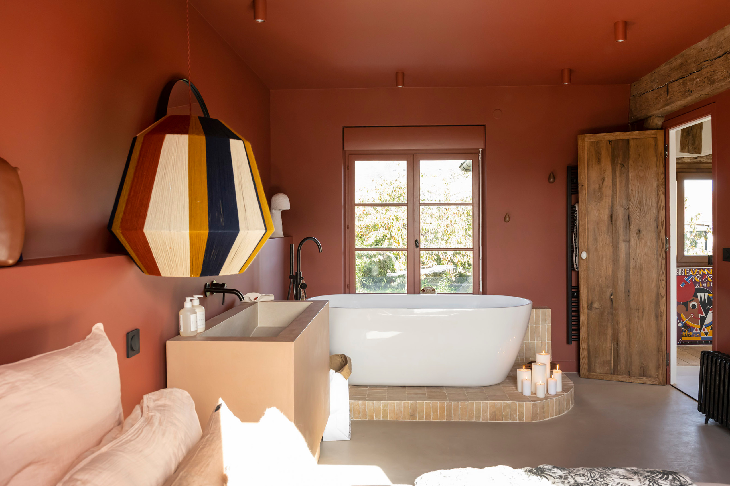 Cela fonctionne aussi très bien pour les baignoires. Et le résultat est saisissant lorsqu’elle se situe dans la chambre. Une belle manière de séparer visuellement les espaces !