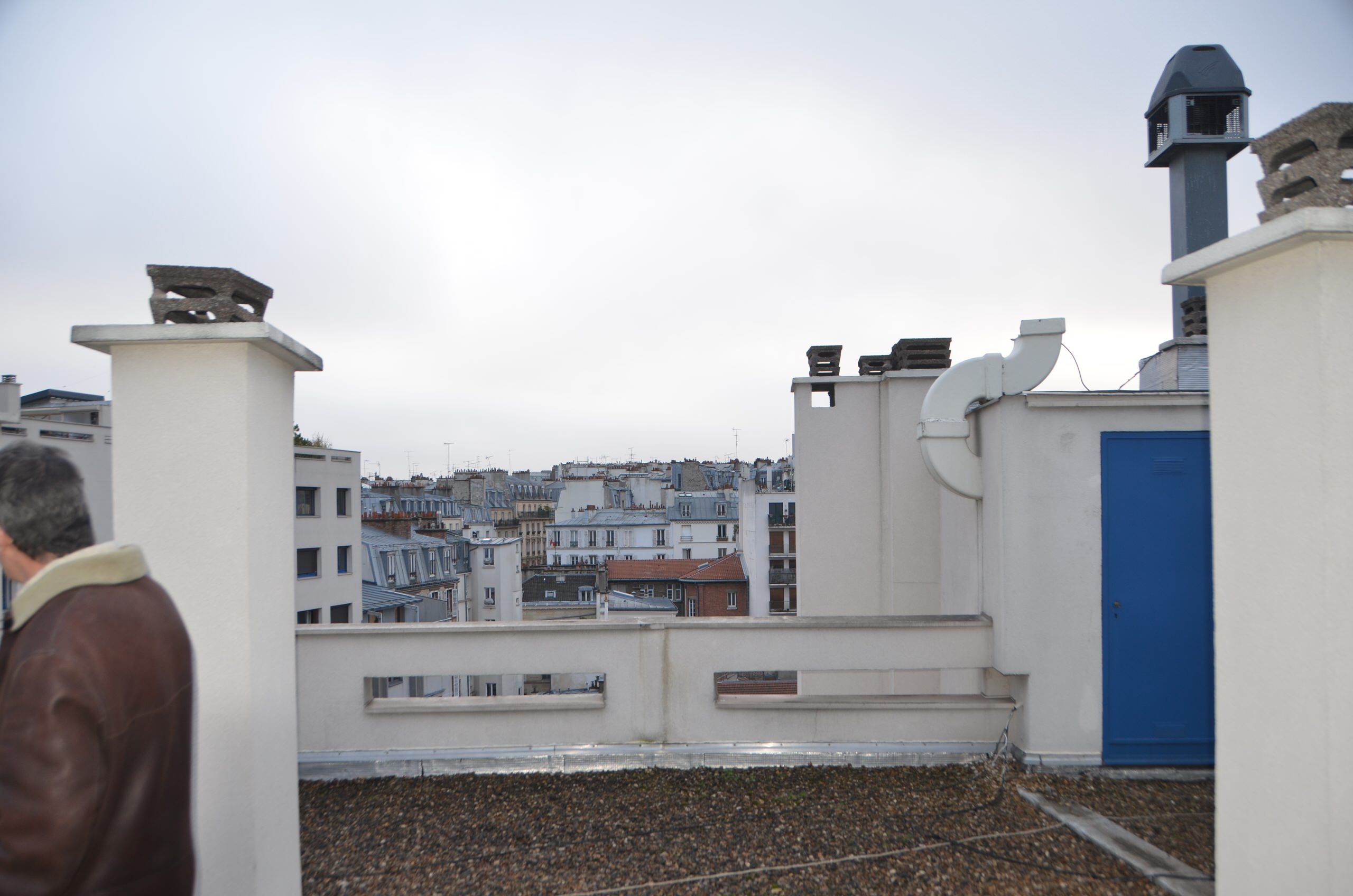 Avant. Situé au 8ᵉ étage, ce toit-terrasse de 200 m² était autrefois un espace gravillonné ponctué de cheminées. Le projet a débuté par l’étude des circulations, avec l’intervention d’un architecte chargé d’envisager un escalier privatif reliant le rooftop à l’appartement des propriétaires. Celui-ci a ensuite recommandé le paysagiste Marc Petit de Terrasses des Oliviers pour concevoir l’aménagement du jardin.