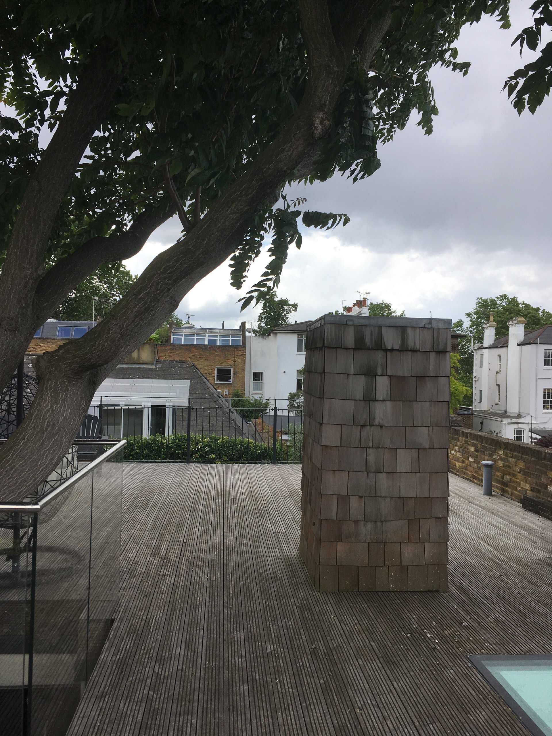 Avant. Perchée sur les toits de Londres, cette terrasse autrefois sombre et exposée au vent ne comptait qu’un vieux barbecue et quelques chaises instables. Seul un majestueux arbre, autour duquel la maison est construite, apportait du caractère. L’architecte paysagiste Georgia Lindsay a su exploiter son potentiel en aménageant plusieurs espaces.