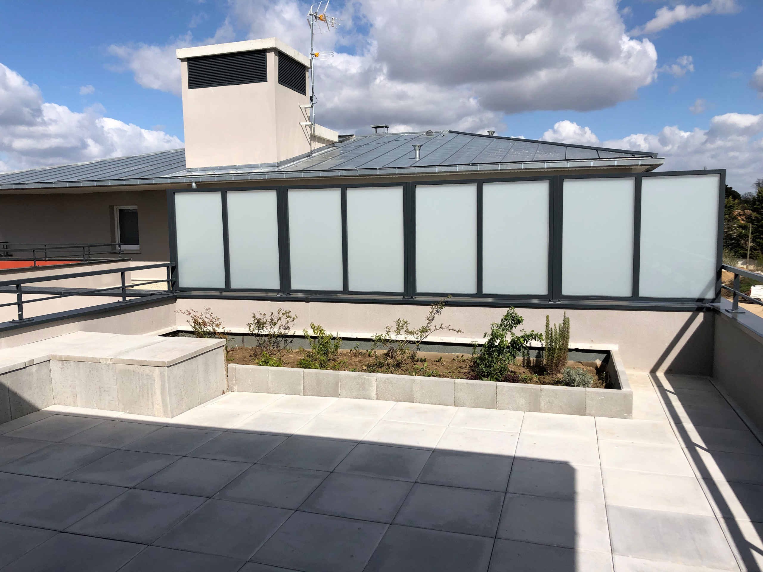 Avant. Avant les travaux, la terrasse était entièrement recouverte d’un dallage, qui a été retiré pour laisser place au nouvel aménagement. Avant même l’achèvement du bien, les propriétaires ont sollicité le paysagiste Philippe Delage de Luget, de la société L’Esprit au Vert, pour concevoir leur future terrasse.