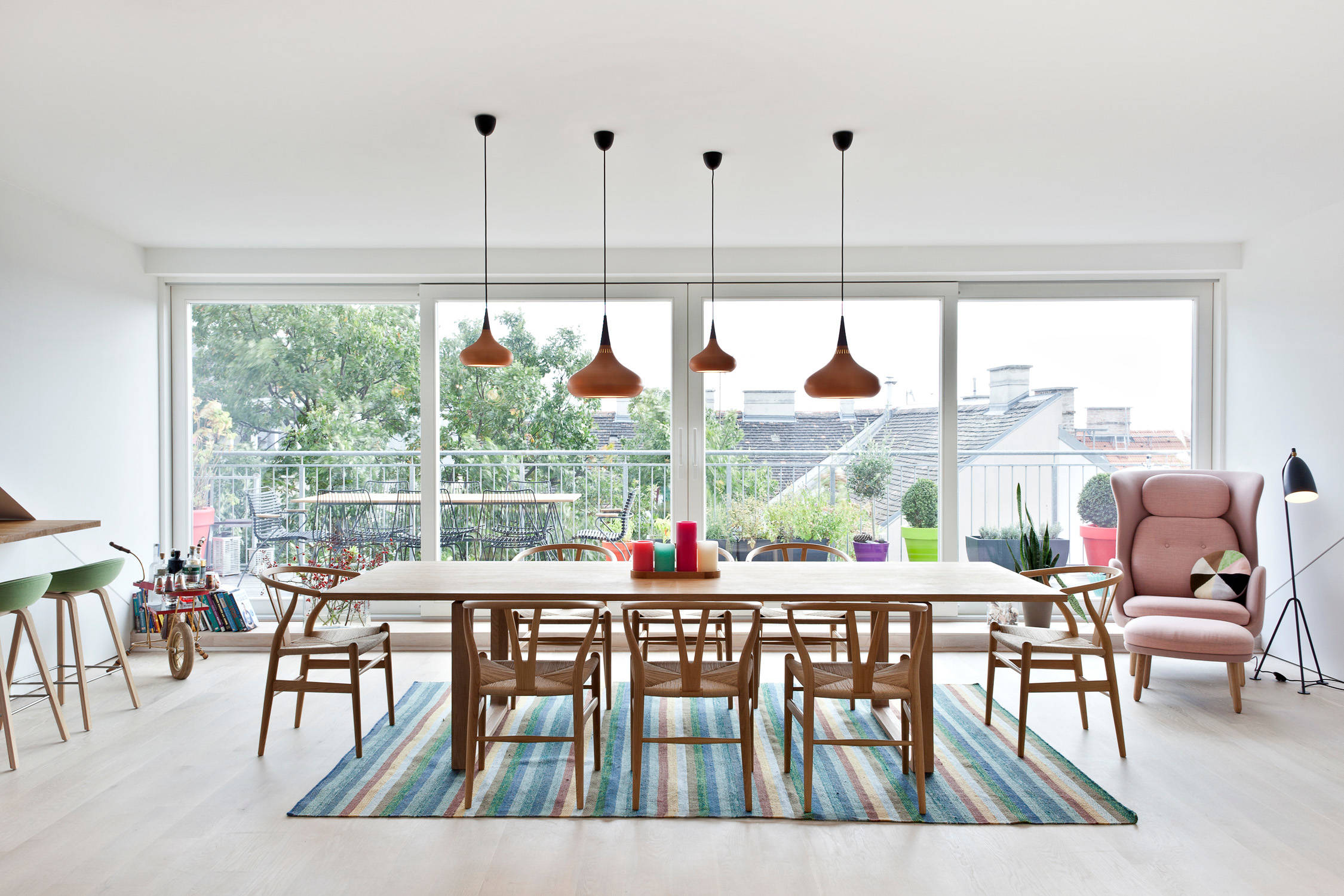 Bonne idée, mise en pratique ici avant l’heure et en extérieur puisque le rose s’accordera également de tons nuit comme le noir ou le bleu navy.