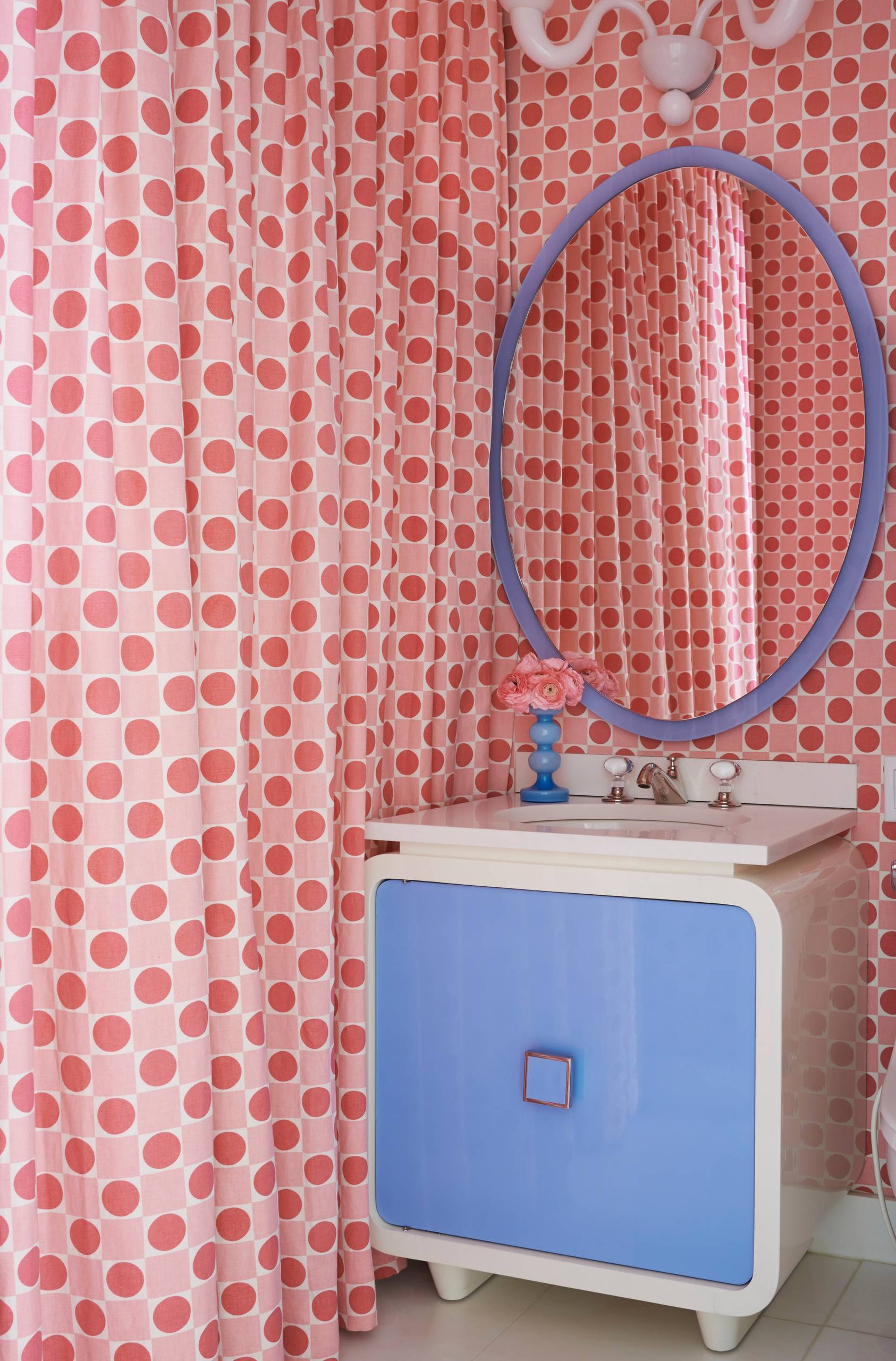Dans cette chambre d’enfant où les deux teintes se retrouvent en duo ludique, le linge de lit rose convainc et sécurise tandis que les casiers bleus ajoutent tranquillement une touche plutôt cool !