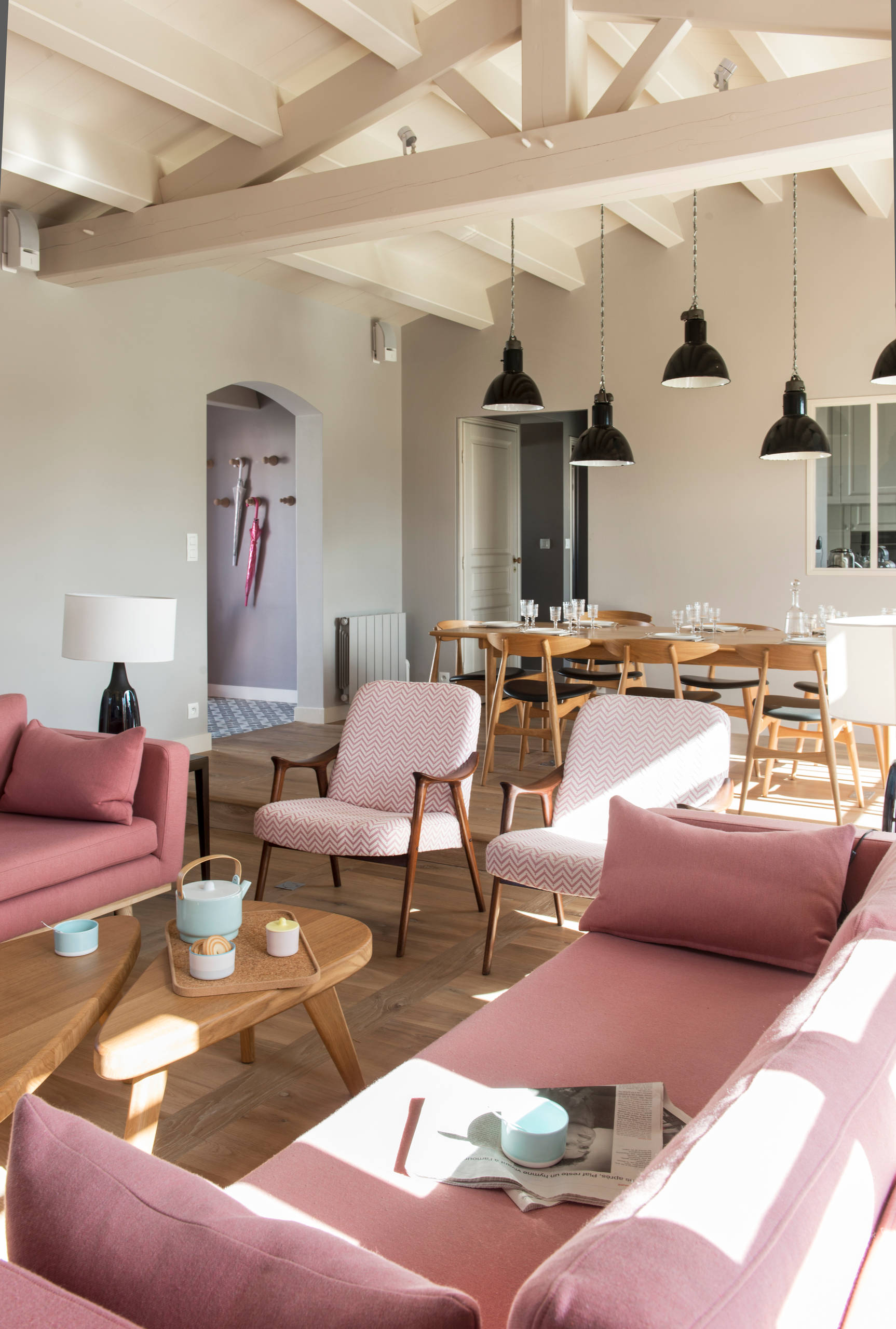 Il surprend même avec du noir, dans un style indus’ contemporain. La preuve dans cette cuisine à laquelle il apporte de la douceur et du charme. Si la couleur s’entend encore une fois comme une forme d’expression, la maîtresse de maison a annoncé ainsi le menu de sa cuisine en choisissant ce rose : dialogue, confort et tendresse. N’oublions pas l’humain, moteur de l’ère industrielle !