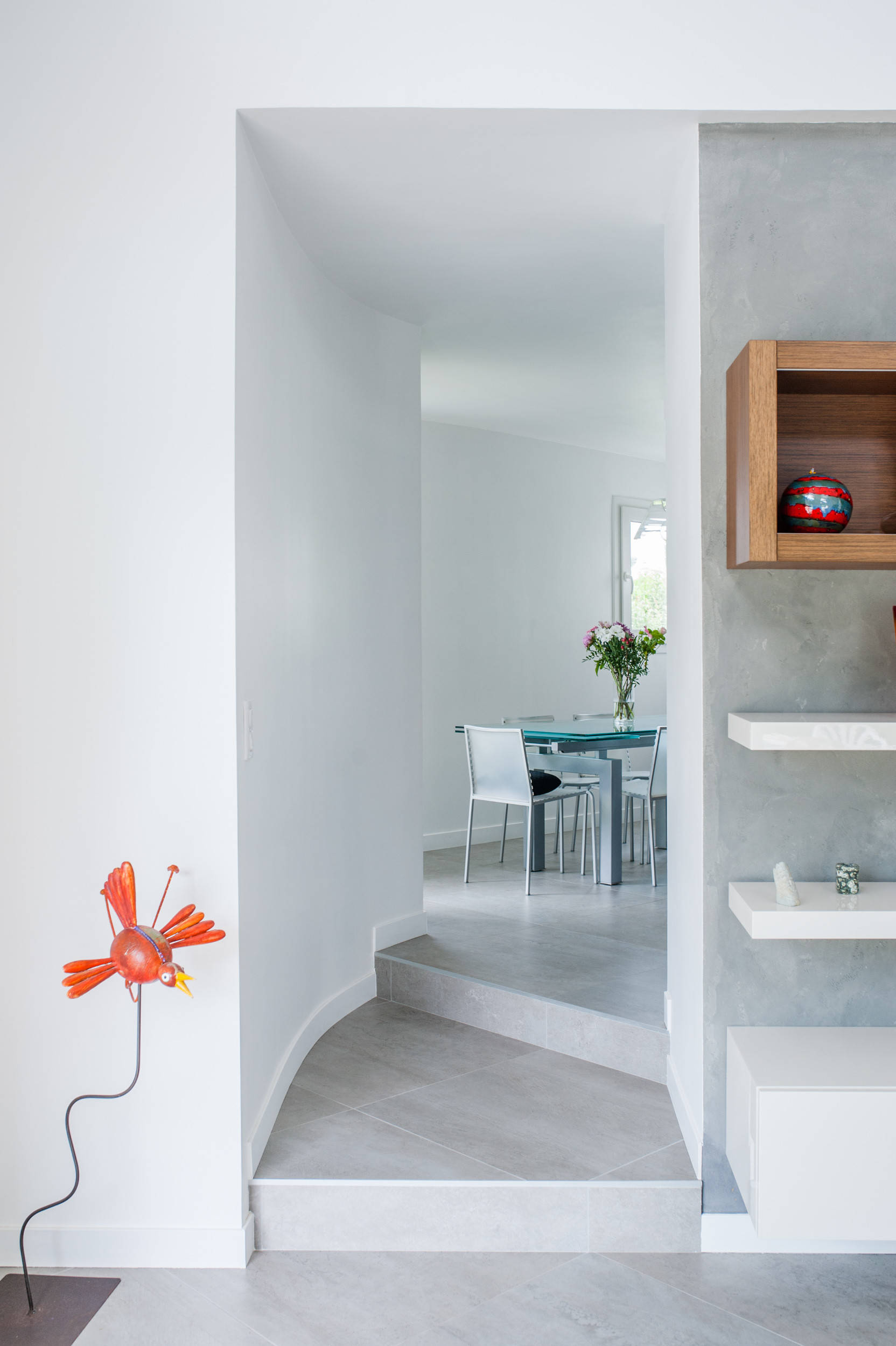 Dans tout le rez-de-chaussée, la peinture uniforme a permis de redéfinir ellipse, dont on aperçoit un morceau ici.