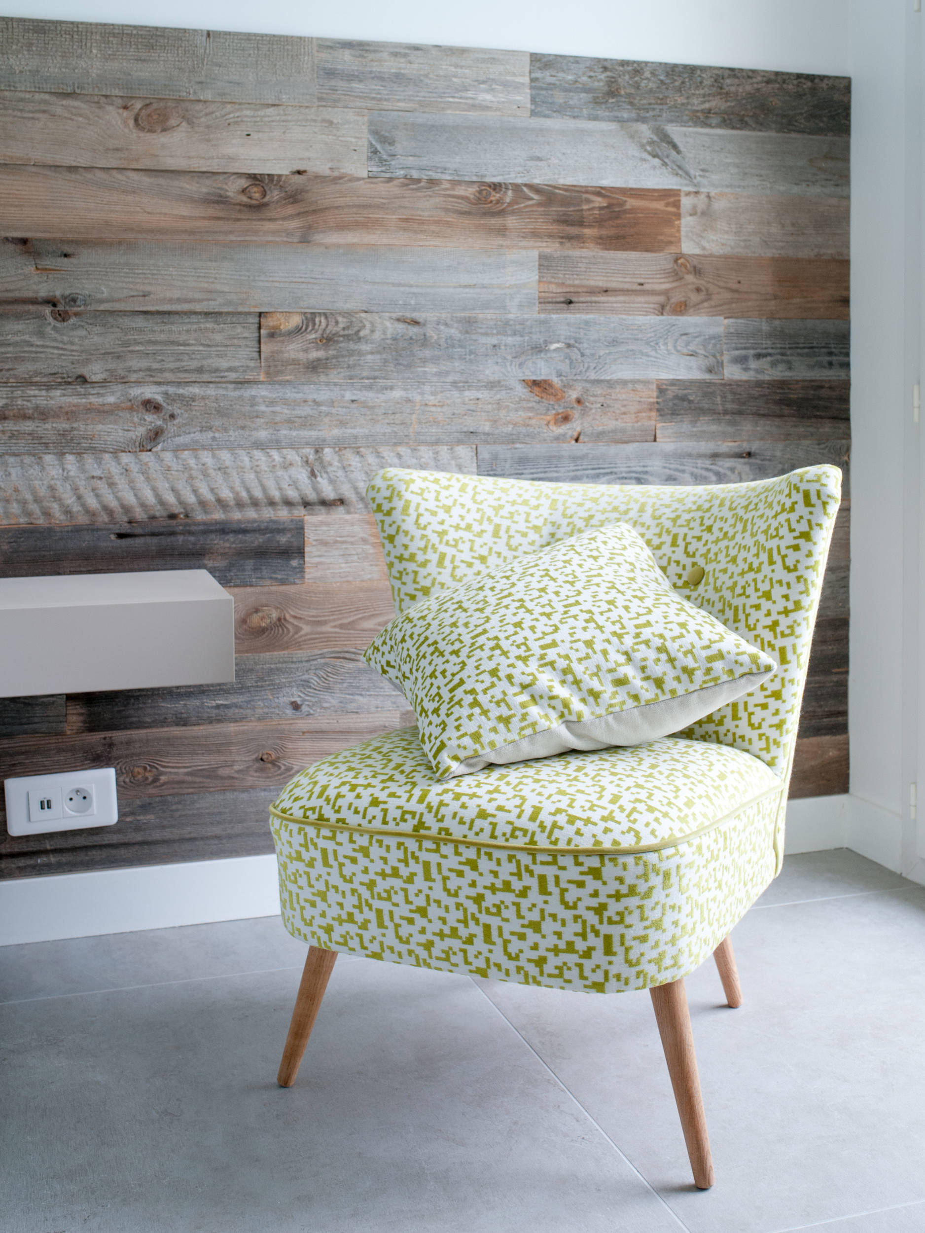 Panneaux de bois adhésif : Stick and Wood ; Papier peint : Élitis