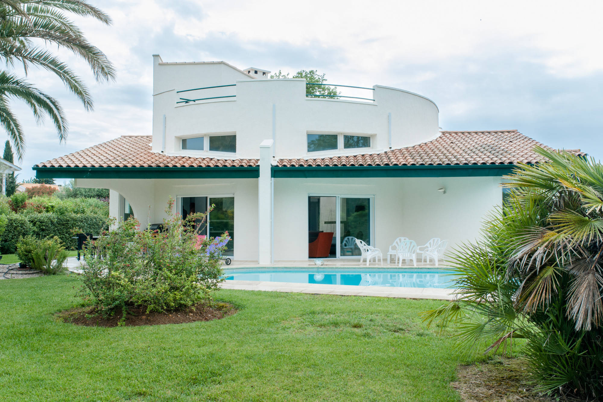 « Nous n’avons pas touché à la structure. J’ai proposé une remise en ambiance avec un changement de décoration et de mobilier. Au-delà de leur volonté de moderniser la maison, les propriétaires voulaient lui trouver une vraie identité », explique Sonia Bousquet qui leur a donc proposé un concept en adéquation avec l’organisation circulaire de la villa autour d’un patio.