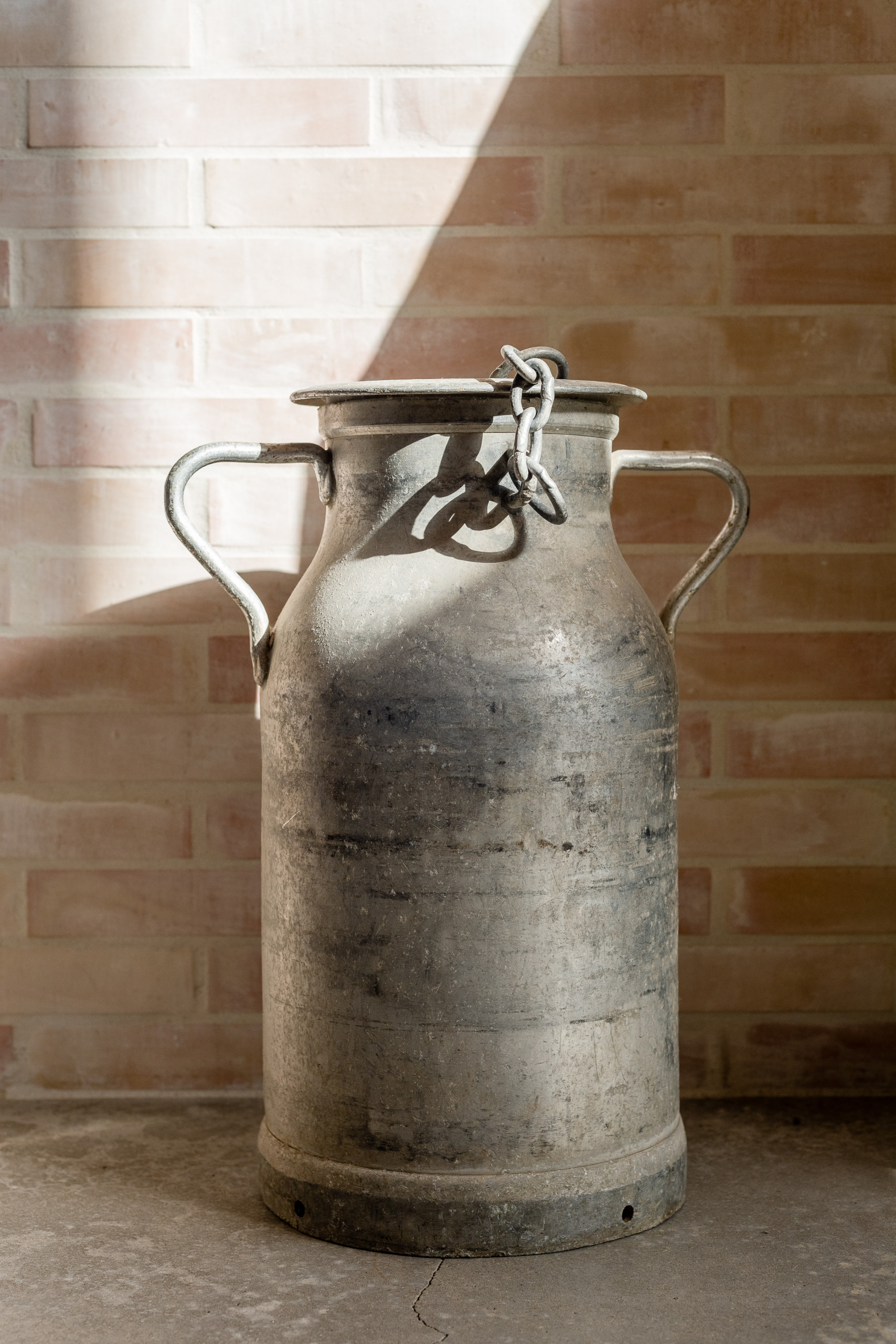 Dans la cuisine, ce pot à lait vintage a été chiné en brocante. Briquettes et métal distillent l’esprit industriel typique des lofts.