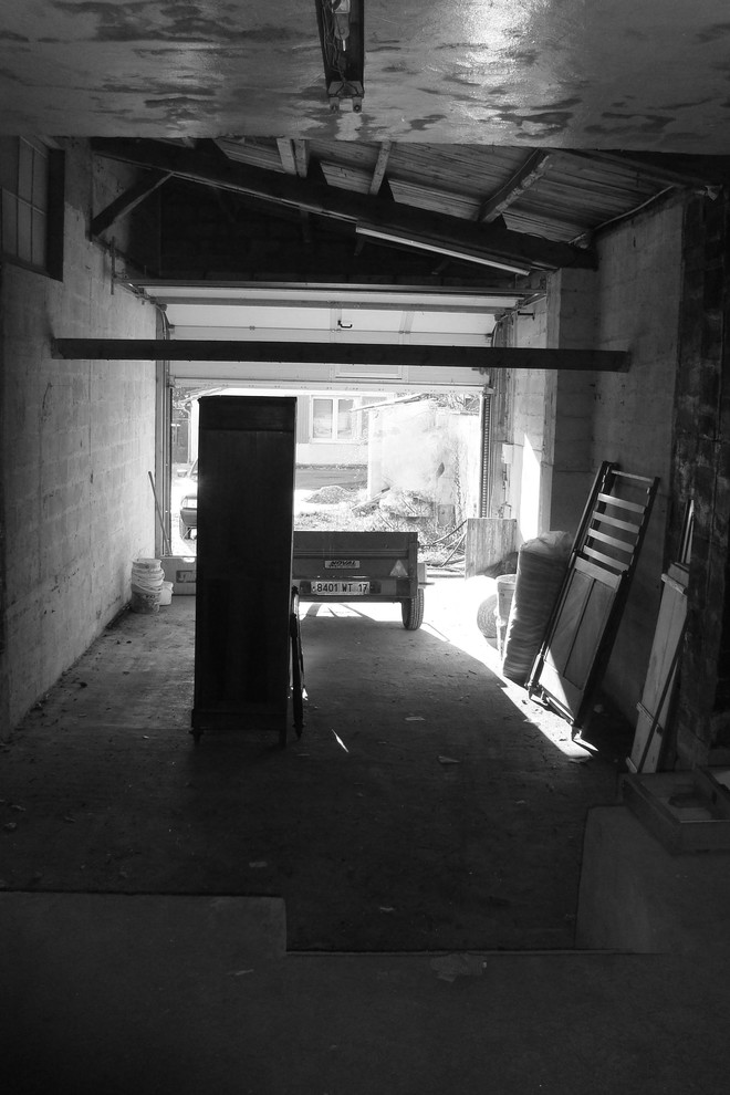 Voici le hangar, proche du centre de La Rochelle, tel que le découvre Nadège lors de son achat en 2011 pour 60 000 euros. Il sert de lieu de stockage à une boucherie. Elle n’a pas de coup de cœur pour le bâtiment étroit et fermé, mais estime rapidement le potentiel de sa situation au cœur de la ville. Par ailleurs, le bâtiment industriel s’accorde bien à son projet de loft.