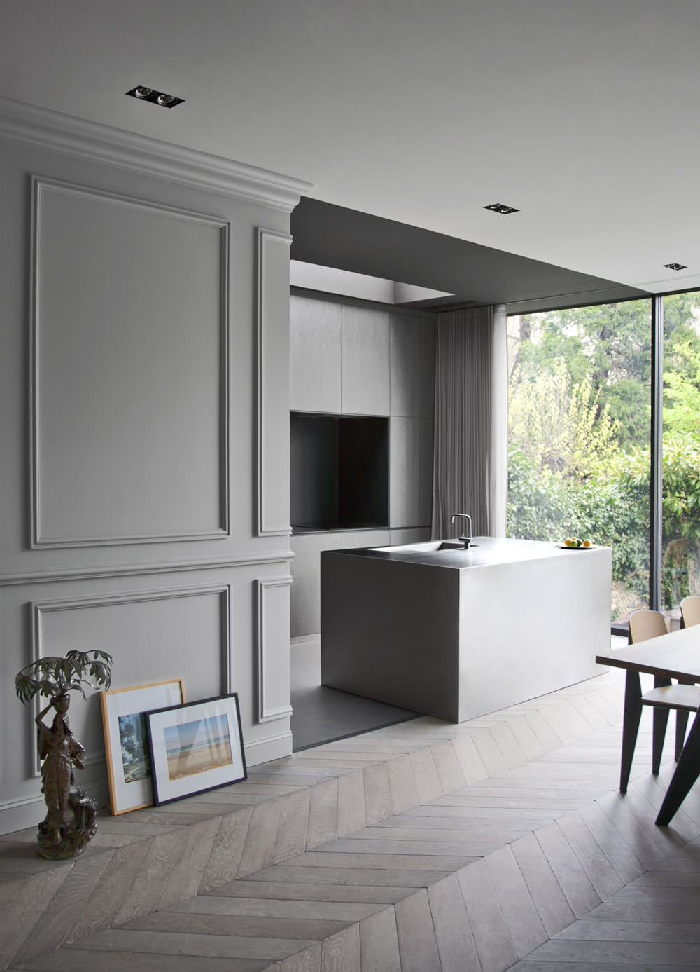 Bien que l’entrée soit un lieu de passage où l’on ne s’attarde pas, c’est un espace primordial où le traitement uni peut faire la différence. Margaux nous explique : « L’entrée n’est pas un espace considéré comme une priorité. Pourtant, c’est, par définition, là où l’on fait le premier pas pour rentrer chez soi, ou inviter. Elle est donc primordiale pour donner le ton. Ne dit-on pas qu’une vente se fait grâce à l’avis que l’on se fait dans les 30 premières secondes ? Donner un caractère fort à une entrée par l’usage d’une teinte monochrome est donc un vrai argument, ne serait-ce que dans l’optique d’une revente. »