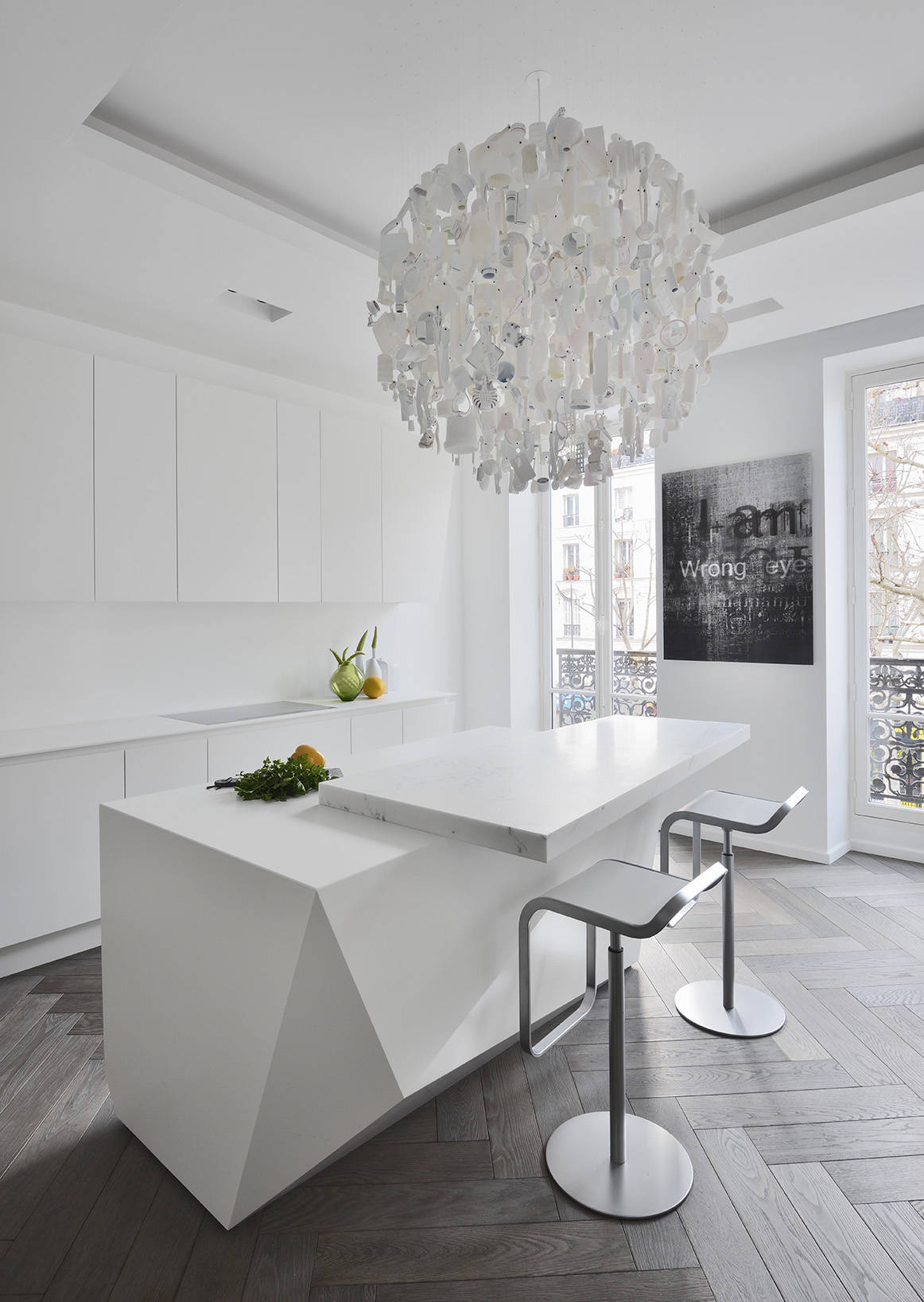 C’est tout simplement mon préféré, notamment avec une finition mate ou satinée. Il n’a qu’un seul réel inconvénient, c’est son prix. Le produit brut avant transformation s’acquiert entre 100 et 120 euros le mètre carré. Après transformation, spécialement quand le Corian est thermoformé, les prix s’envolent. Le marbre est magnifique, mais c’est du sucre et il boit toutes les taches. Si je devais hésiter, ce serait avec le granit, naturel et ultrarésistant, mais sur lequel les joints sont toujours apparents.