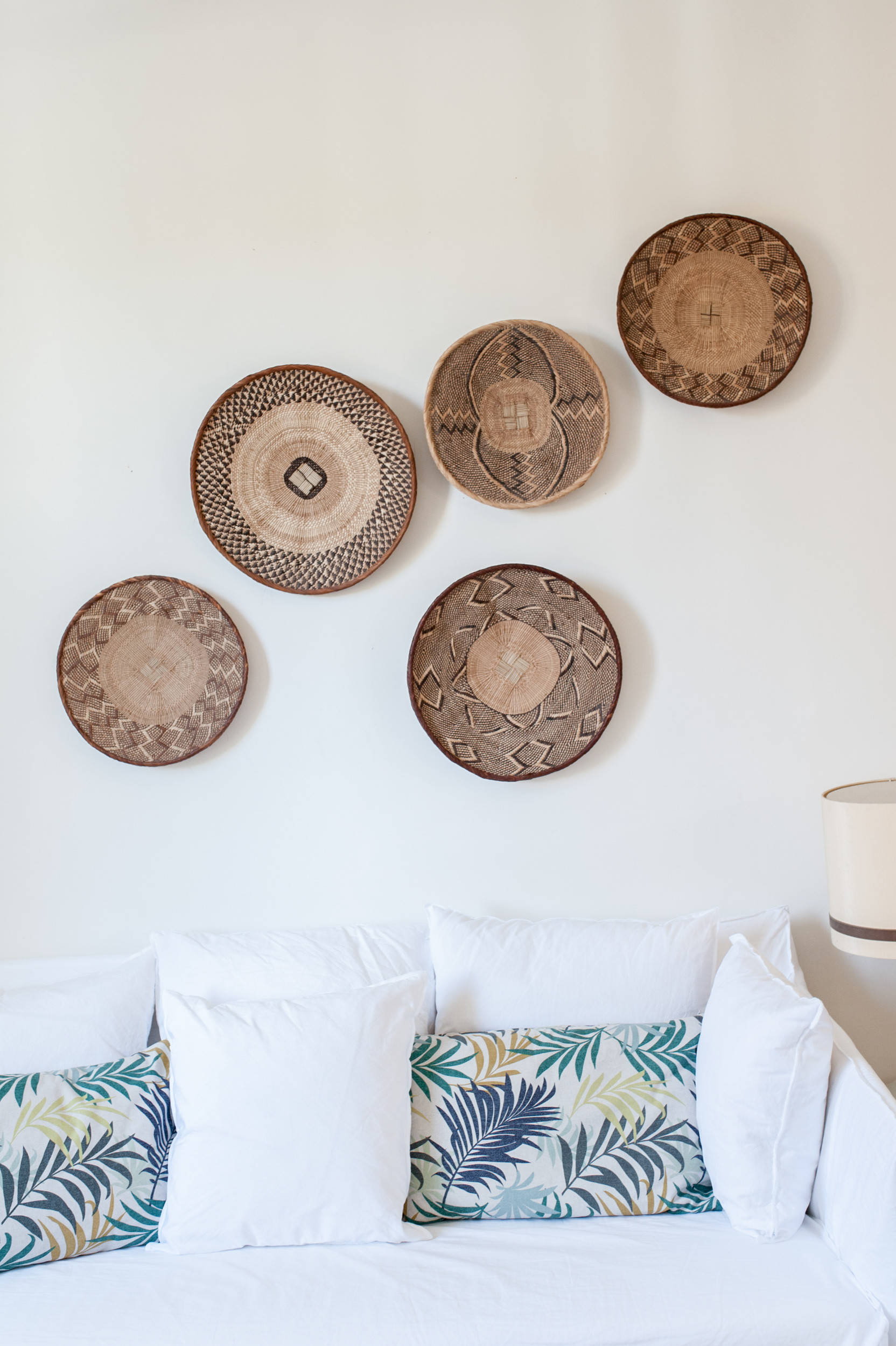 Un tapis inspiré des kilims a été posé au sol pour le confort de la famille, qui aime marcher pieds nus. « J’adore les tapis et n’imagine pas ma maison sans, mais je ne voulais pas un nid à poussière », explique Béatrice. Le tapis fait écho aux tissages achetés à Cap Town, en Afrique du Sud, et fixés au-dessus du canapé.