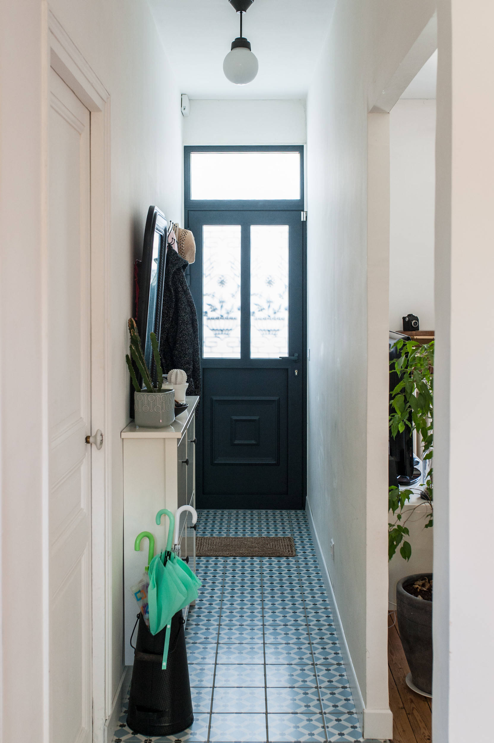 Le sol de l’entrée et de la cuisine était recouvert d’un carrelage marron des années 80. Béatrice, qui rêvait de carreaux de ciment, en a déniché à moindre coût sur Le Bon Coin et est partie les chercher à plusieurs heures de là. Seulement voilà, le projet ne s’est déroulé pas comme prévu. « Quand le carreleur a cassé le carrelage marron, il a découvert, dessous, des carreaux de ciment, trop abîmés par la colle pour être conservés. Je lui ai alors proposé de poser les carreaux que je venais d’acheter, mais il m’a expliqué que c’était impossible car le dénivelé avec les parquets de la maison aurait été trop important », raconte Béatrice. « Résultat : j’ai revendu mes carreaux de ciment pour acheter une imitation finalement bien pratique puisqu’elle ne s’abîme pas. »