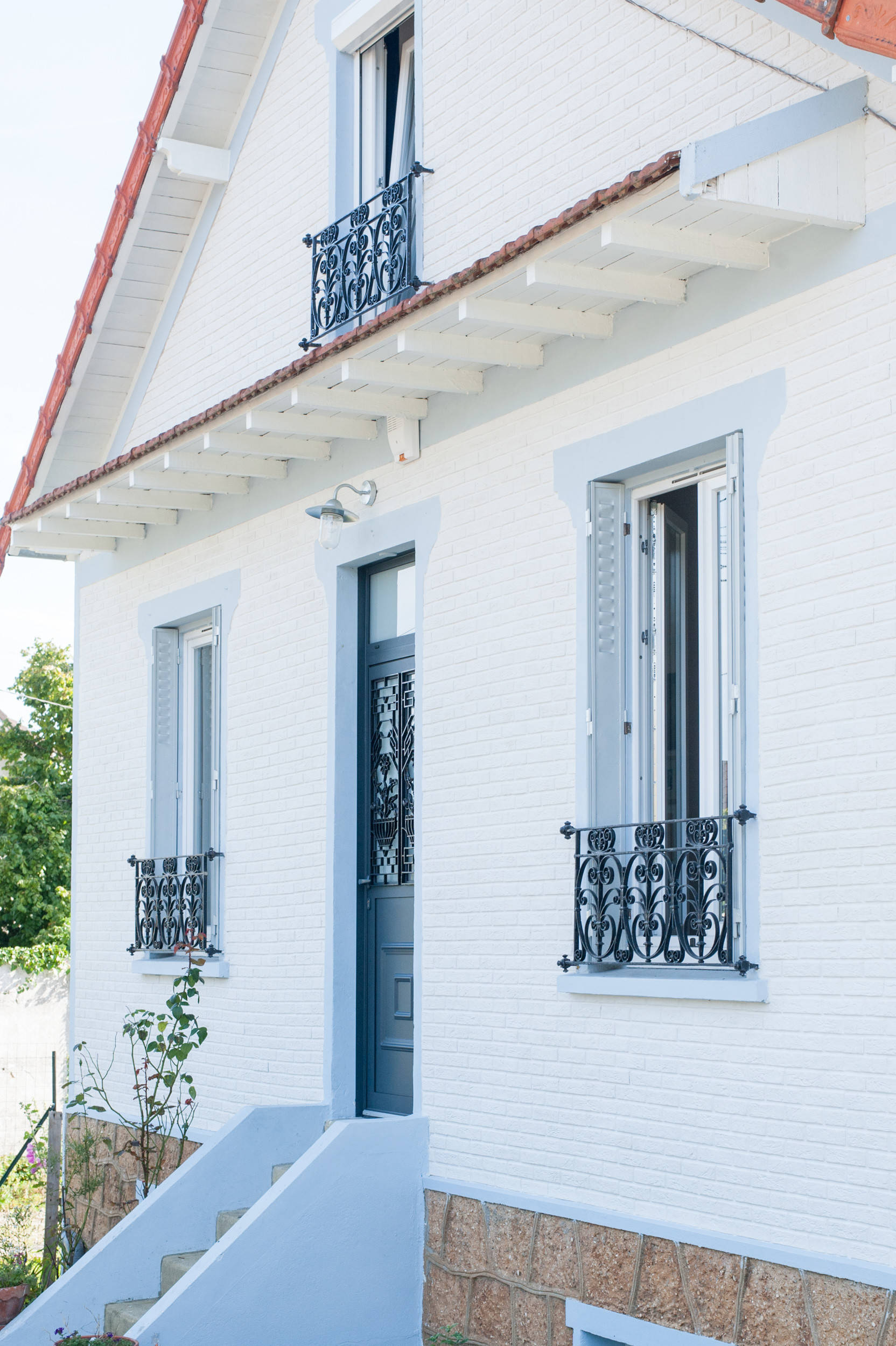 Quand ils achètent la maison, sa façade est dénaturée par des garde-corps en tubes verts. Un autre coup de chance permettra à Béatrice de les remplacer par ces ravissants modèles en fer forgé. « Je suis passée par hasard devant une maison très ancienne sur le point d’être détruite. J’ai récupéré le contact du propriétaire et lui ai expliqué que j’adorais la bâtisse », raconte-t-elle. « Quand je lui ai proposé de lui racheter les garde-corps d’origine, il a accepté et m’a même proposé de visiter la maison pour voir si je voulais d’autres choses… Inutile de dire que je ne suis pas repartie les mains vides ! »
