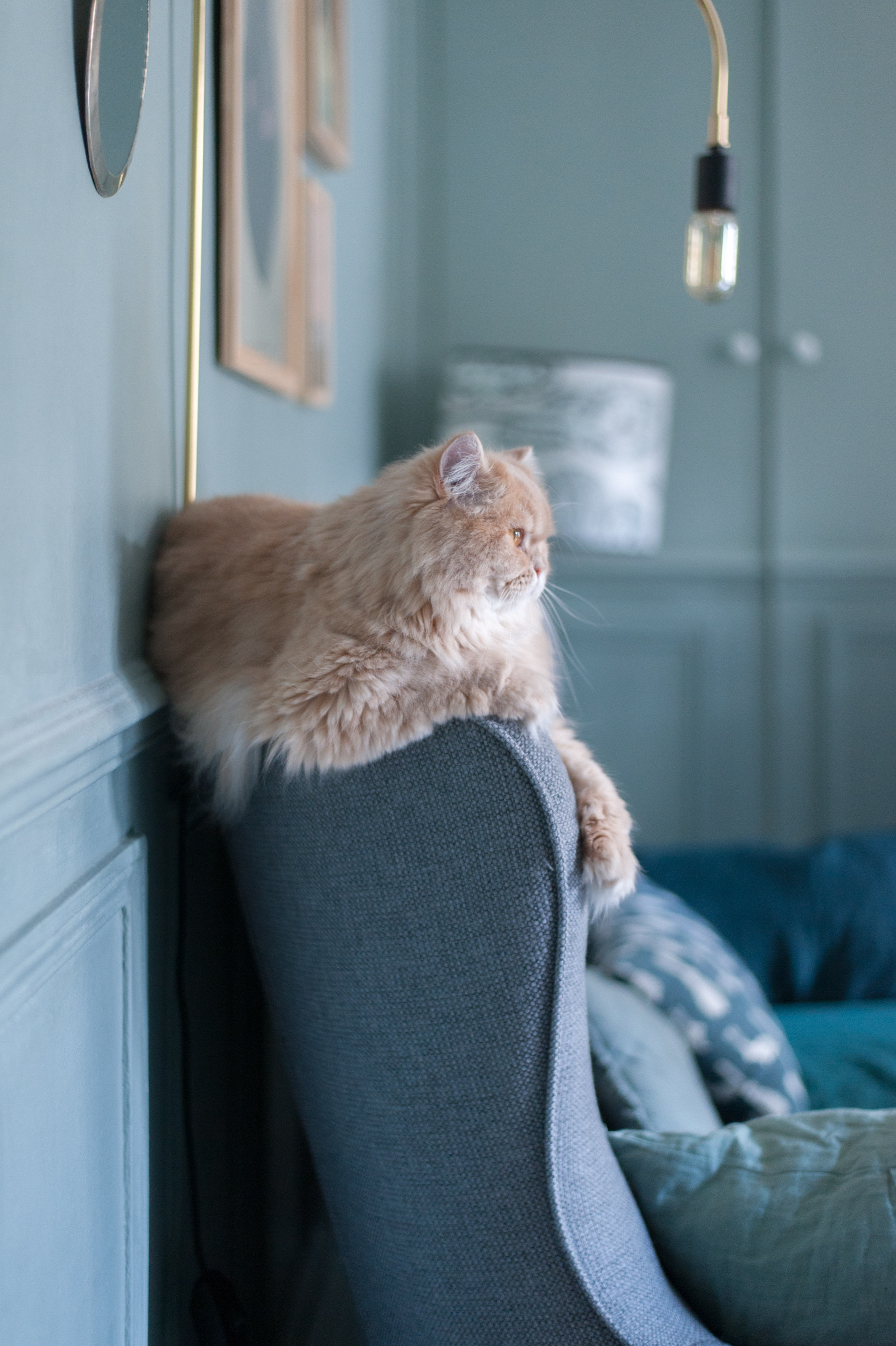 Parfait pour observer ce qui se passe au salon, le dossier du canapé est le coin fétiche de Kitsune.