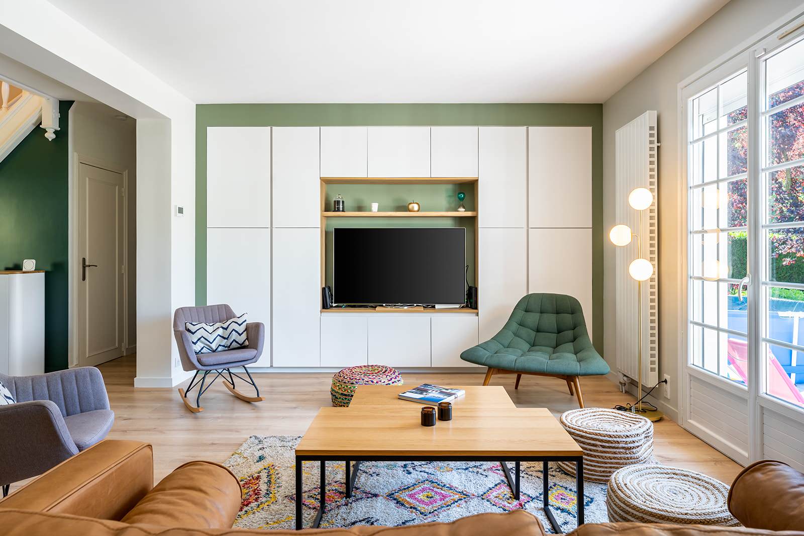 Rangement ne signifie pas dépouillement. Le salon est avant tout une pièce à vivre, qu’il ne s’agit pas de transformer en musée. Au contraire, l’objectif étant d’accroître votre bien-être, il est important que l’ordre soit fait tout en douceur avec, par exemple, des bibliothèques ou armoires fermées. Vos livres et objets y resteront à portée de main sans rompre l’harmonie de la pièce. Votre déco se teinte également de votre présence grâce à ce que vous choisissez d’y mettre pour la personnaliser, et vous l’approprier. Vos objets coup de cœur, souvenirs de voyage et symboles qui vous sont chers, y ont tout à fait leur place. Laissez-vous guider par votre ressenti pour trouver le juste équilibre entre surabondance, et absence !