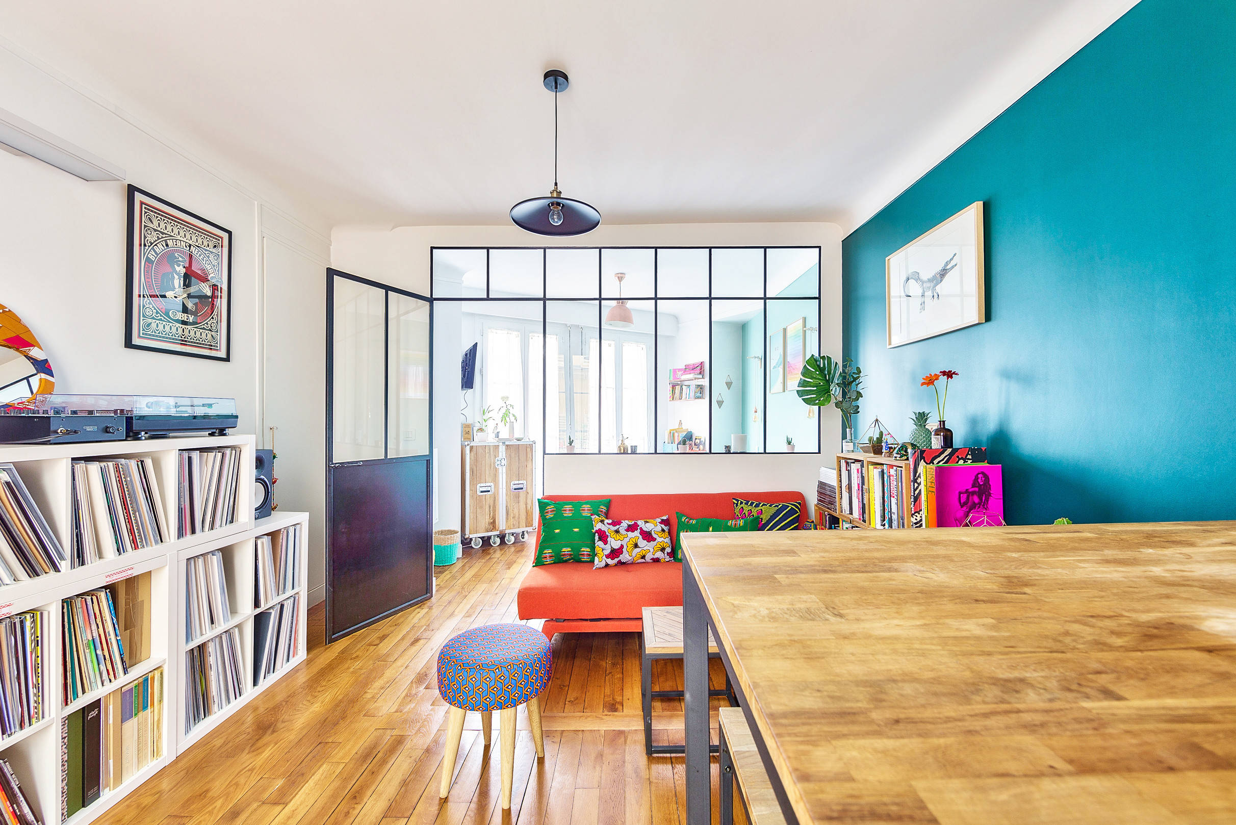 Agrandir cuisine, pièce de vie, salle de bains et égayer le tout : tels étaient les défis de cette rénovation à Paris