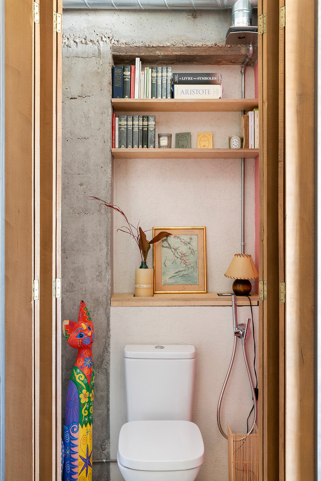 Voici des toilettes supplémentaires, avec des étagères à l’intérieur.