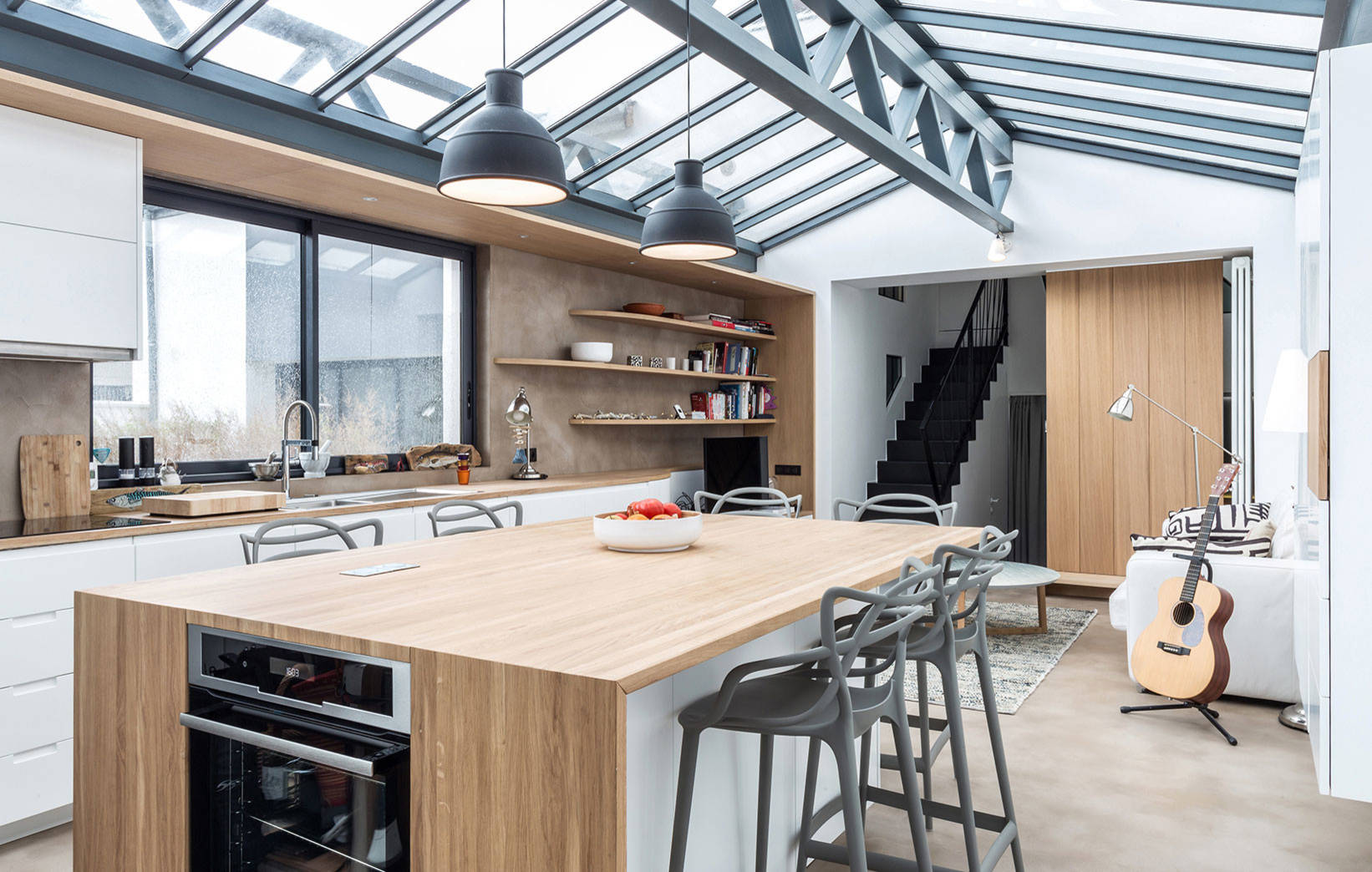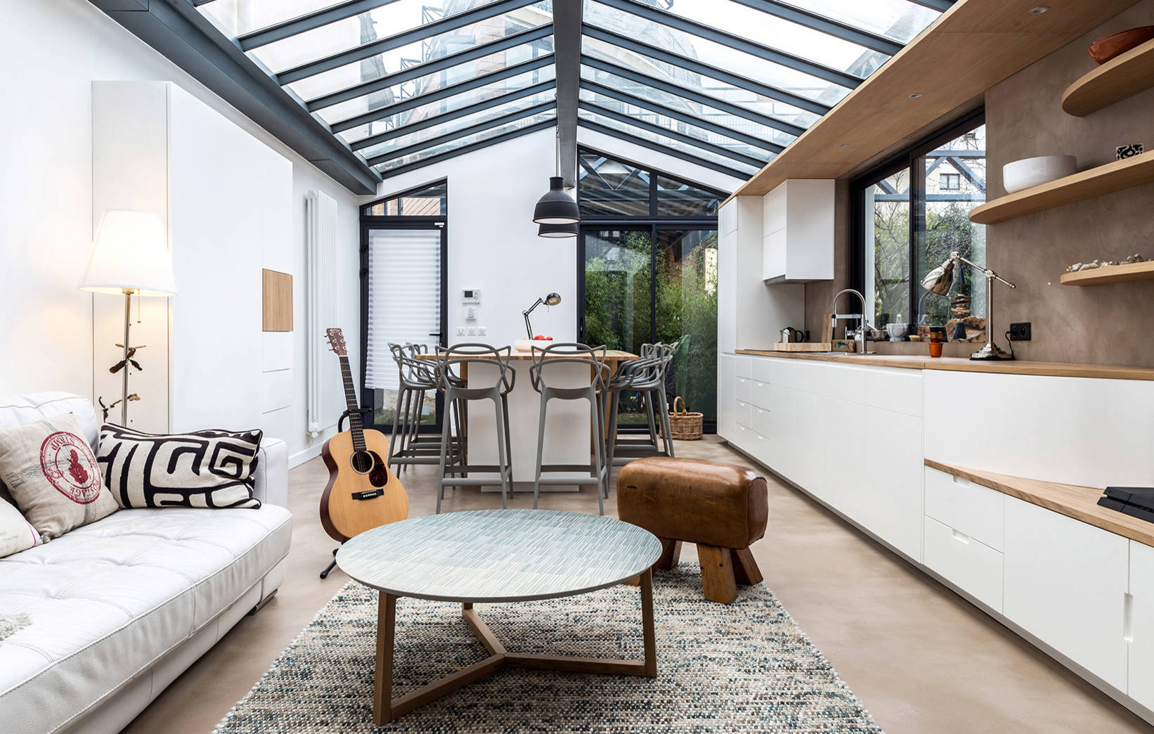 Chaises de Philippe Starck : Kartell ; Suspensions : Muuto