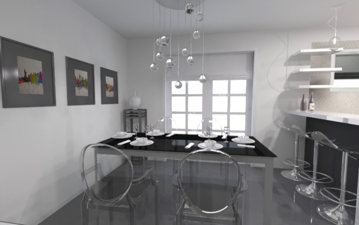 La Louis Ghost est parfaite autour d’une table à manger. Ici, elle s’accorde très bien avec une suspension en verre, également transparente.