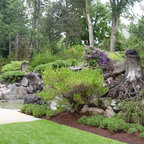 Inspiration pour un grand jardin arrière asiatique avec des pavés en pierre naturelle et une entrée ou une allée de jardin. — Houzz