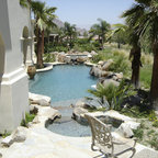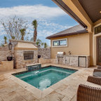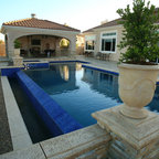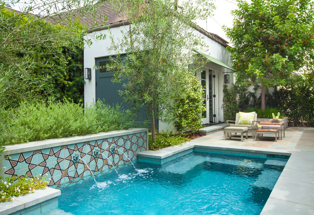 Inspiration pour une piscine méditerranéenne rectangle avec un point d'eau. — Houzz