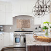 Need more front angle on cabinet covering. vent hood. Don't like tile design on wall.
