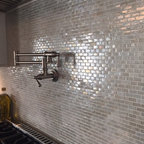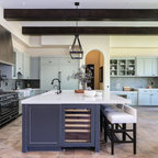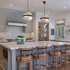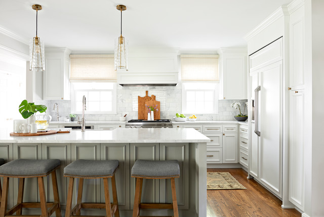 Nice treatment under the island, nice built-in fridge.