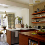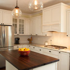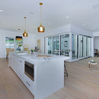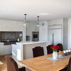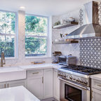 The original kitchen in this lovely home did not meet the needs of its owners who needed more communal space for family. By opening a wall and removing a closet between the kitchen and the main living space, the design team beautifully integrated a new, transitional kitchen into the main floorplan.