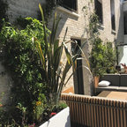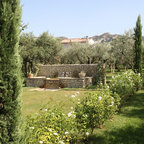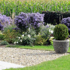 Des jardins graphiquesLe jardin de bastide, grande demeure de propriétaires terriens, met en avant un style régulier, souvent symétrique, composé d’allées bordées d’arbres. Locale, la végétation est souvent travaillée et taillée. L’eau y est récurrente. Les jeux de perspective ouvrent sur le terroir comme dans les jardins à la française. Thomas Gentilini associe ici la réhabilitation d’une bastide à un jardin réinterprété. Avec des éléments nouveaux tels que les murs rouges, il prend un air bien moins classique et bourgeois. Dynamisé, il bascule vers un jardin provençal moderne et bien dans son époque.