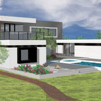 Two story modern with cedar and stucco siding. Photo by Peter Barnaby