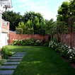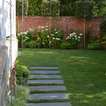 poser de très larges pas japonais sur la pelouse pour aller de la maison jusqu'à la maison de jardin