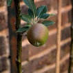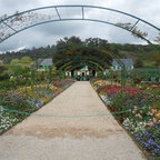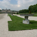 I love the antique wall with flowers along it with the dark steps leading through the grass.