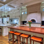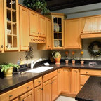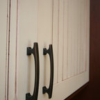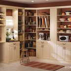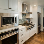 Idée de décoration pour une petite arrière-cuisine tradition avec des portes de placard blanches et un sol en carrelage de céramique. — Houzz
