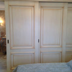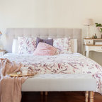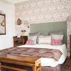 Exemple d'une grande chambre parentale romantique avec un mur beige, un sol en bois foncé et un sol marron. — Houzz