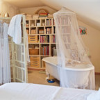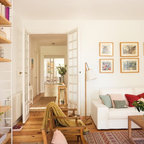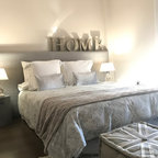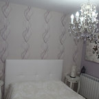 “En la zona de vestidor, una alfombra de pelo largo y cortinas que bailan a ras de suelo acaban de darle forma al conjunto”, cuenta la profesional sobre este dormitorio bonito y práctico.