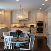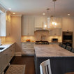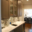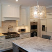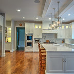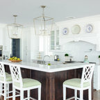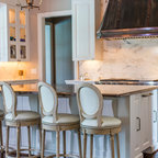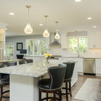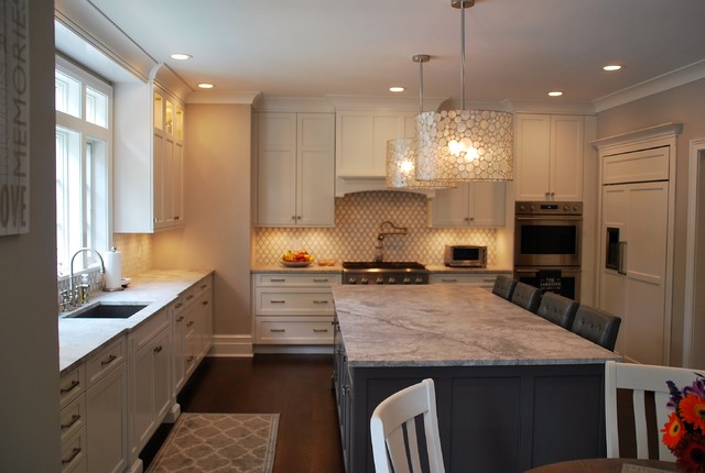 By moving the back wall out 3 feet into the backyard overlooking the pool, and recessing the refrigerator into an existing wall, we were able to create for this family an expansive kitchen with a grand size island that is perfect for gathering with family and friends. This kitchen features: Brookhaven I cabinets in Edgemont Recessed Square with matching drawer head; kitchen perimeter is Nordic White on maple; island and butler's pantry are Vintage Slate (paint with glaze) on maple; Super White quartzite countertops; backsplash is Royal Rope mosaic tile in Bardiglio Marble and white Carrera marble.
