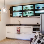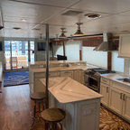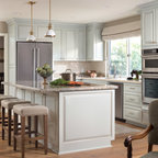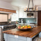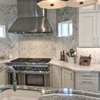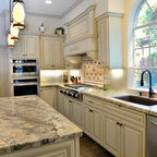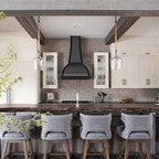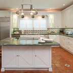 Kitchen: Cabinet colors, island, textures, warmth.