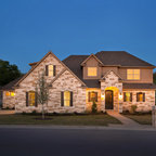 Front exterior of a Colonial Revival custom (ground-up) residence with traditional Southern charm. Each room is lined with windows to maximize natural illumination throughout the home, and a long front porch provides ample space to enjoy the sun.