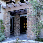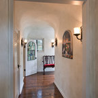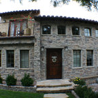 This is a Mediterranean style home in Glendale, CA. that was remodeled on the exterior and interior by Roger Perron Design and Construction. The arched windows, black wrought iron window boxes and clay tile roof complete the theme.