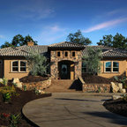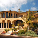 This is a Mediterranean style home in Glendale, CA. that Roger Perron did an exterior remodel for. The arched windows, black wrought iron window boxes and clay tile roof complete the theme.
