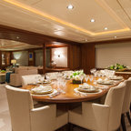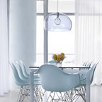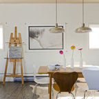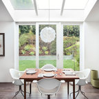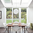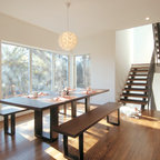 ナチュラルな白い空間に白を中心としたダイニング。天窓や、庭に続く大きな窓から入る光で明るく、開放感あふれた空間です。そんな白の空間に自然と溶け込んでいる〈レ・クリント〉の《172》に、不思議と目線が引き寄せられます。